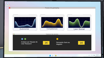 * Pitch : Incarnez un data analyst à la recherche des meilleurs concepts de jeu dans un jeu à la rencontre de Paper Please et Game Dev Tycoon. A quel point contournerez-vous la morale pour profiler vos joueurs et maximiser le profit de votre studio ?